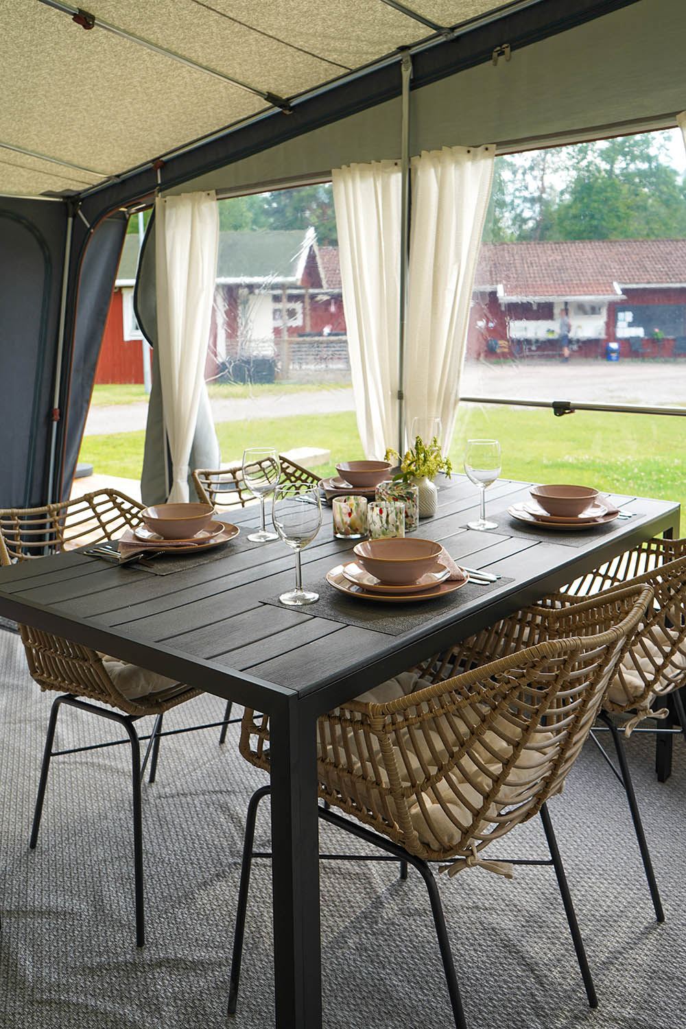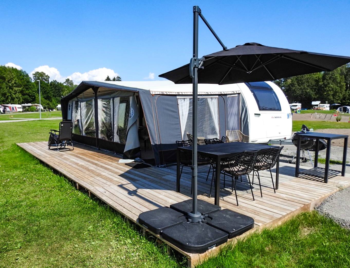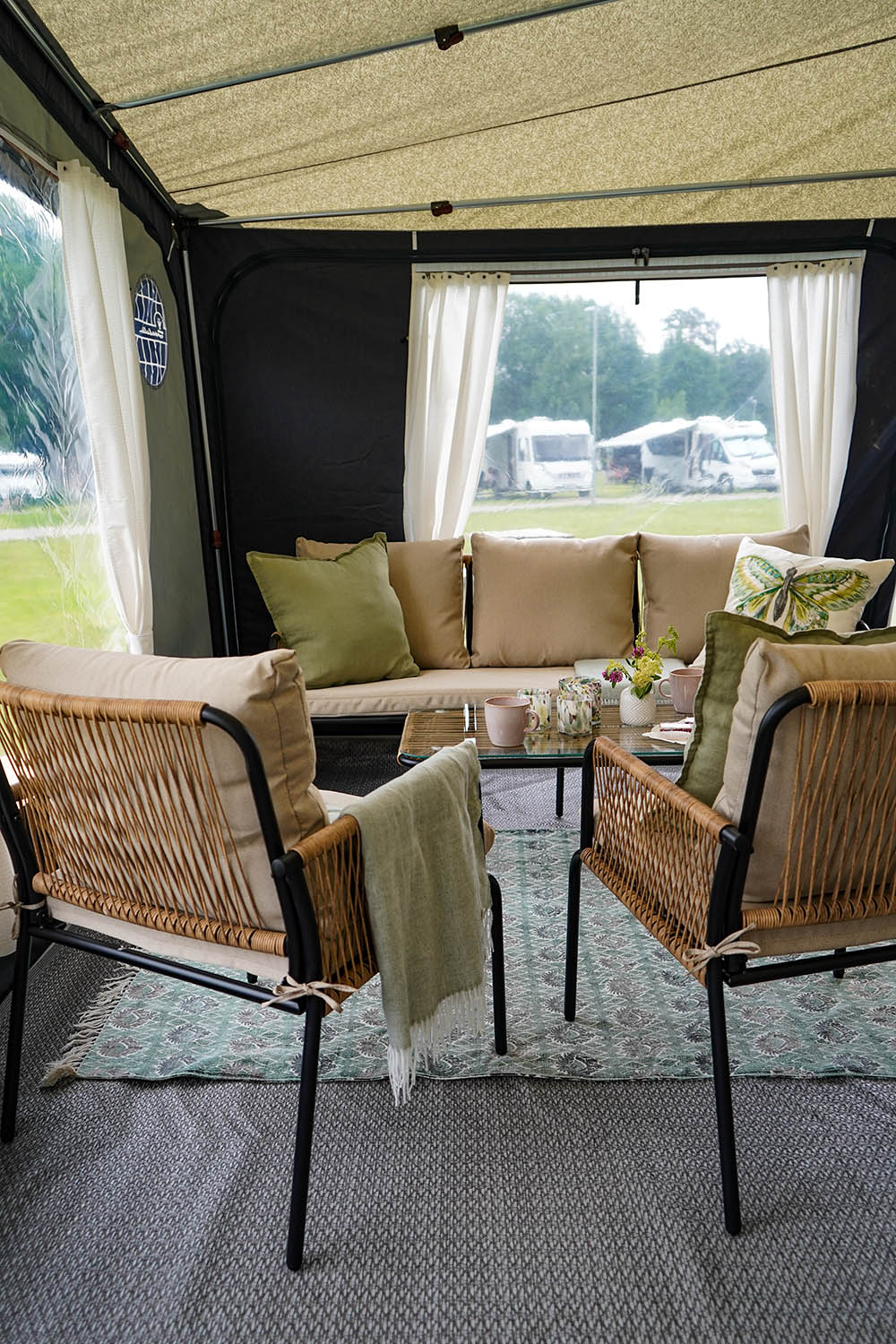 Experience glamping by Lake Mälaren! Our Glampis is a fully equipped Adria Adora 673 PK caravan with a spacious 7x3 metre Isabella awning. Perfect if you want the comfort of a hotel combined with closeness to nature and the camping feeling.
