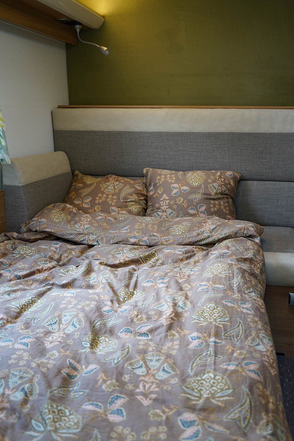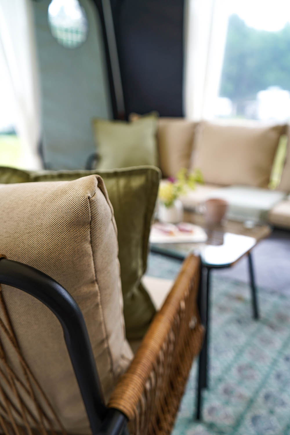 The caravan has two separate entrances - in one section there's a comfortable double bed for adults and in the other there's a sofa bed for two plus an upper bunk for children. Between the sections you can close off for extra privacy. In the spacious Isabella awning there are games and toys for the children!
