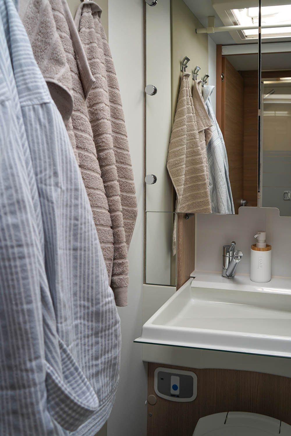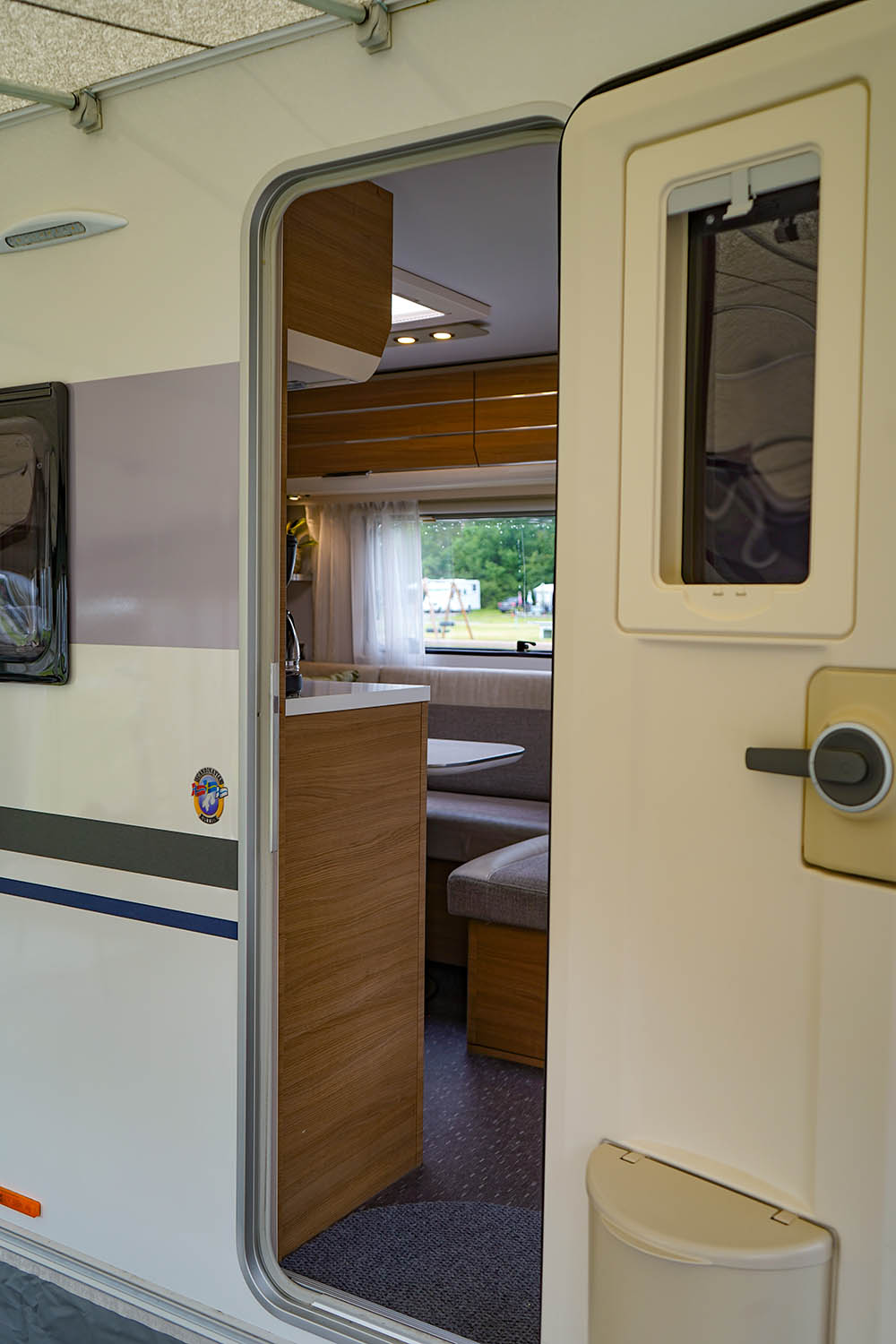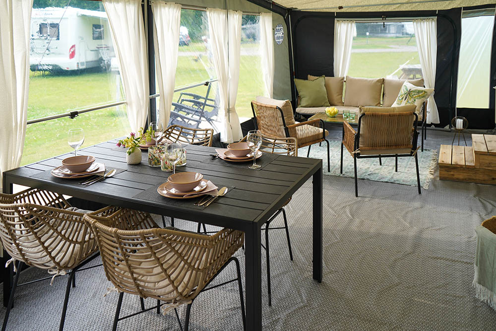 The caravan has two separate entrances - in one section there's a comfortable double bed for adults and in the other there's a sofa bed for two plus an upper bunk for children. Between the sections you can close off for extra privacy. In the spacious Isabella awning there are games and toys for the children!