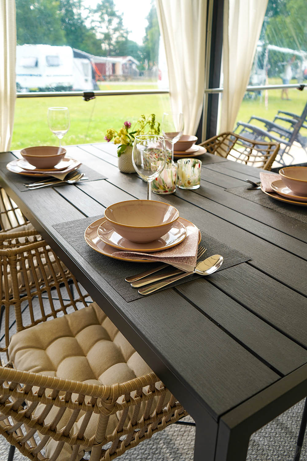 Glampis is centrally located on the campsite, close to facilities, beach and reception. Here you can enjoy the sunset from your private patio, barbecue dinner and fall asleep to the sounds of nature.